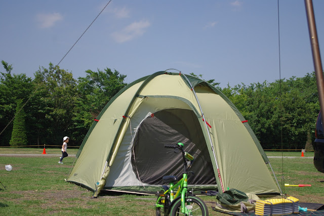 友人家族が来る前にあらかたの設営を終わらせたかったところですが、次男がグズグズでなかなか設営が進まずw(我家は父子で参加なので・・・)