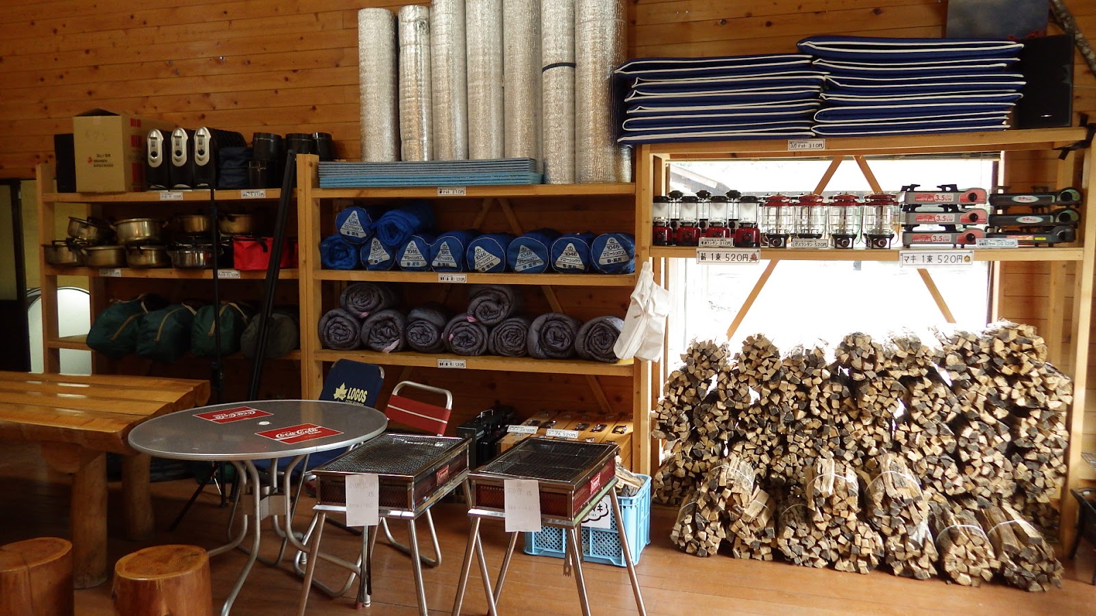 | レンタル用品と薪(520円) |